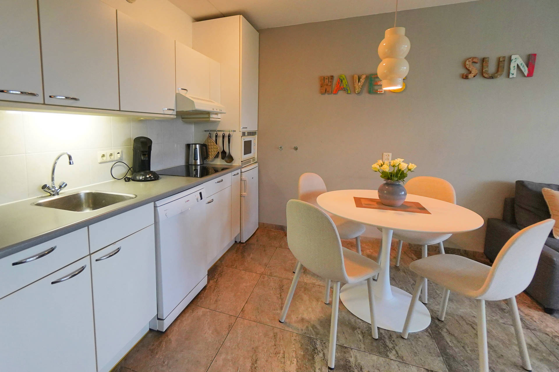 Die Küche ist komplett ausgestattet mit Geschirrspüler, 4-Platten-Herd, Kühlschrank, Wasserkocher, Toaster und Senseo-Kaffeemaschine. Das geräumige Badezimmer hat eine schöne Badewanne/Dusche, Waschbecken und Toilette.