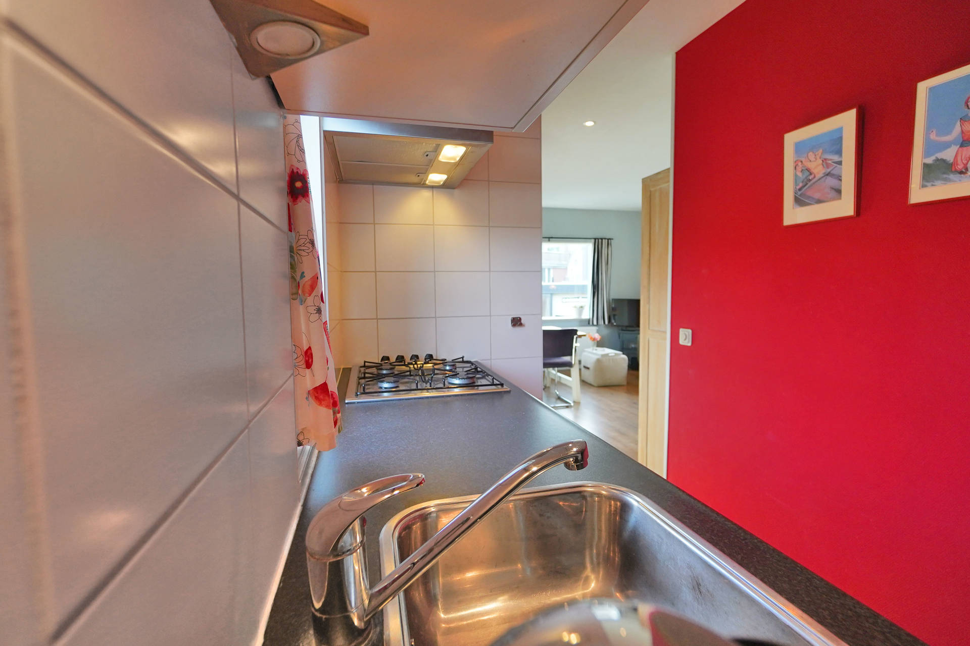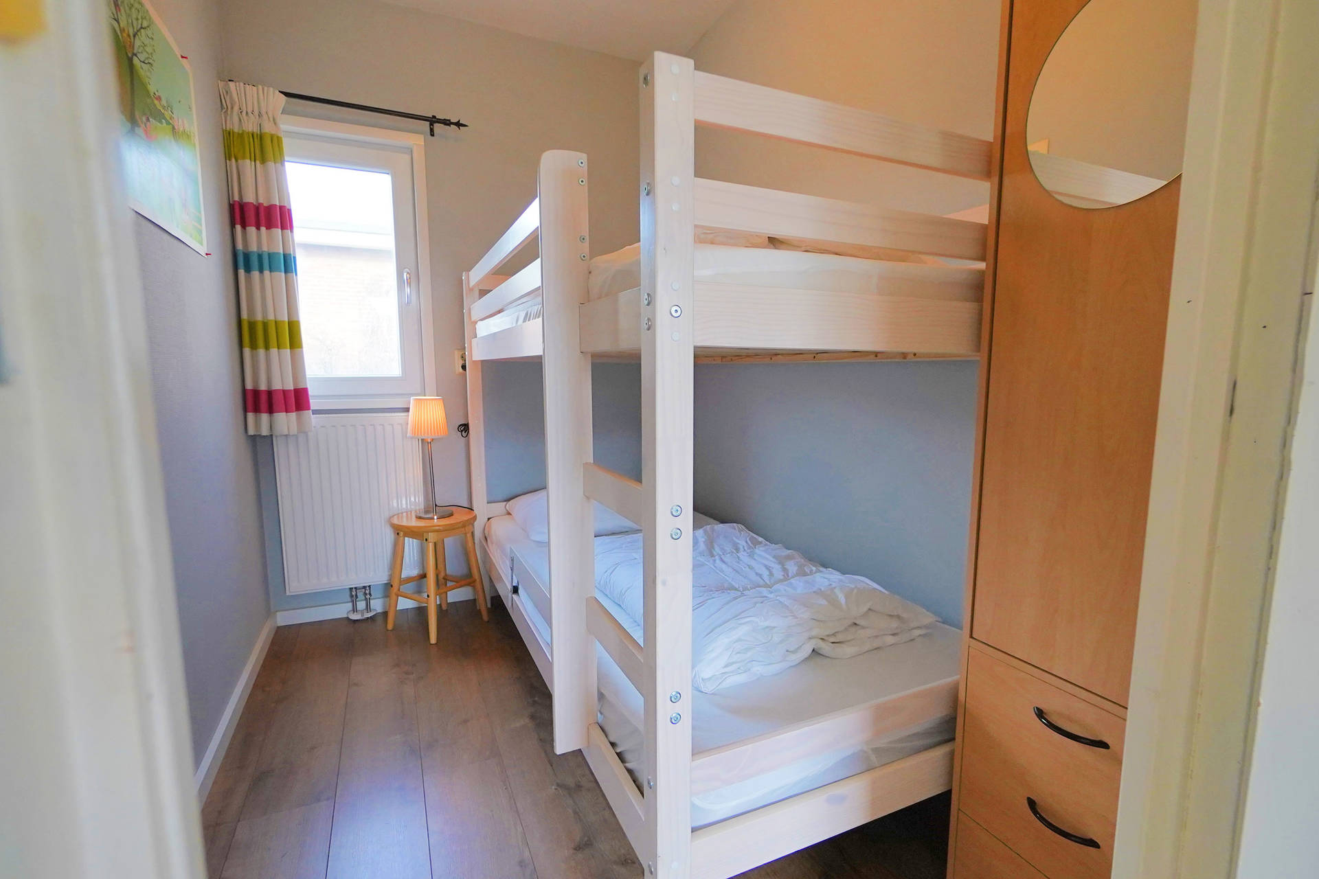 Feiern Sie Ihren Urlaub an diesem einzigartigen Ort in diesem gemütlichen Ferienhaus. Das Ferienhaus verfügt über 2 kleine Schlafzimmer, eines mit einem Etagenbett und eines mit einem Doppelbett. Das Doppelbett ist auf 3 Seiten zwischen den Wänden eingeklemmt. Das kompakte Wohnzimmer grenzt direkt an die Küche, die komplett ausgestattet ist, einschließlich einer Spülmaschine. Die Wohnung verfügt über ein modernes Bad mit Dusche.