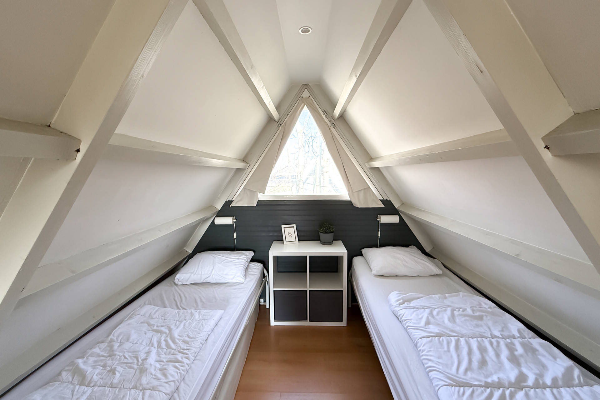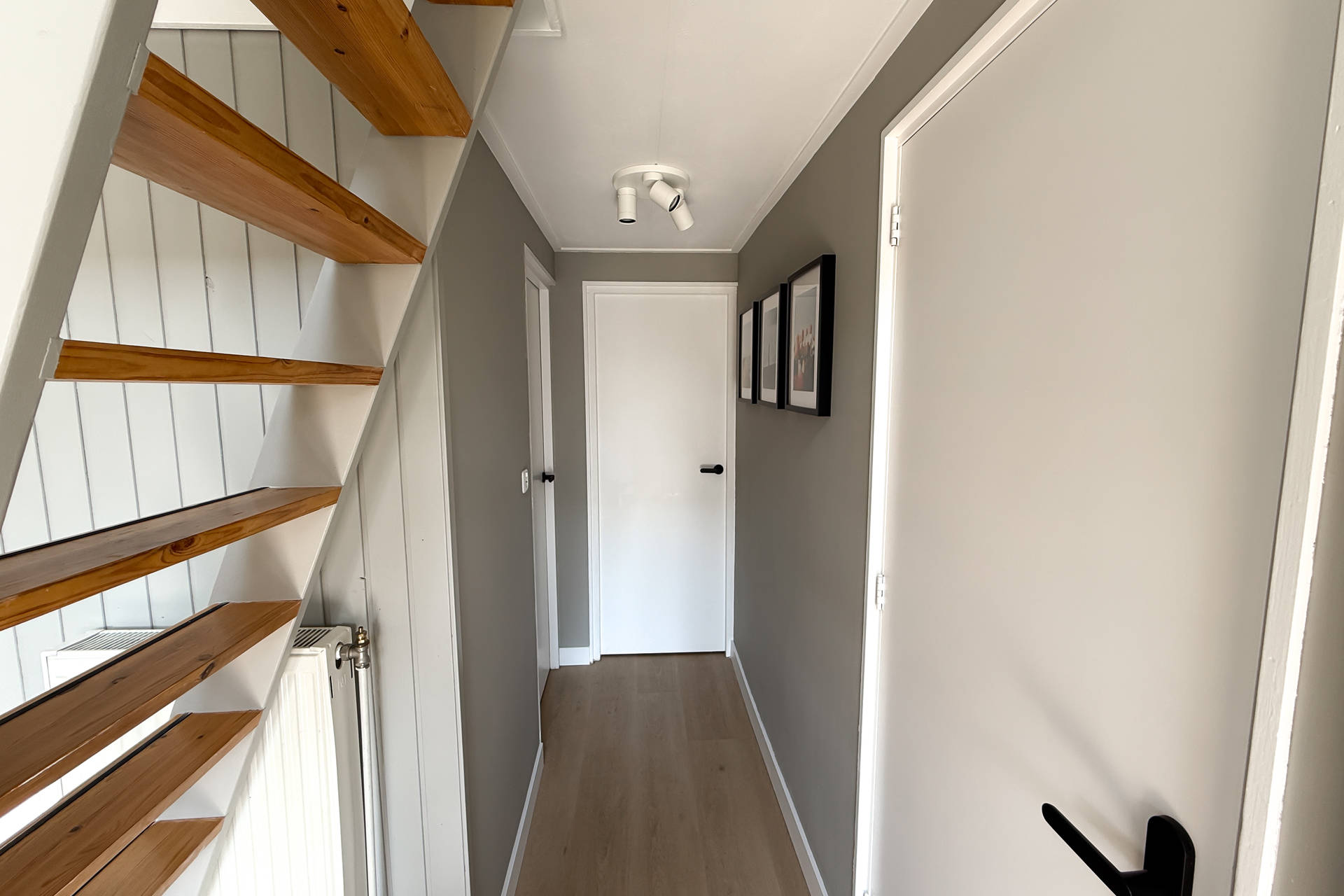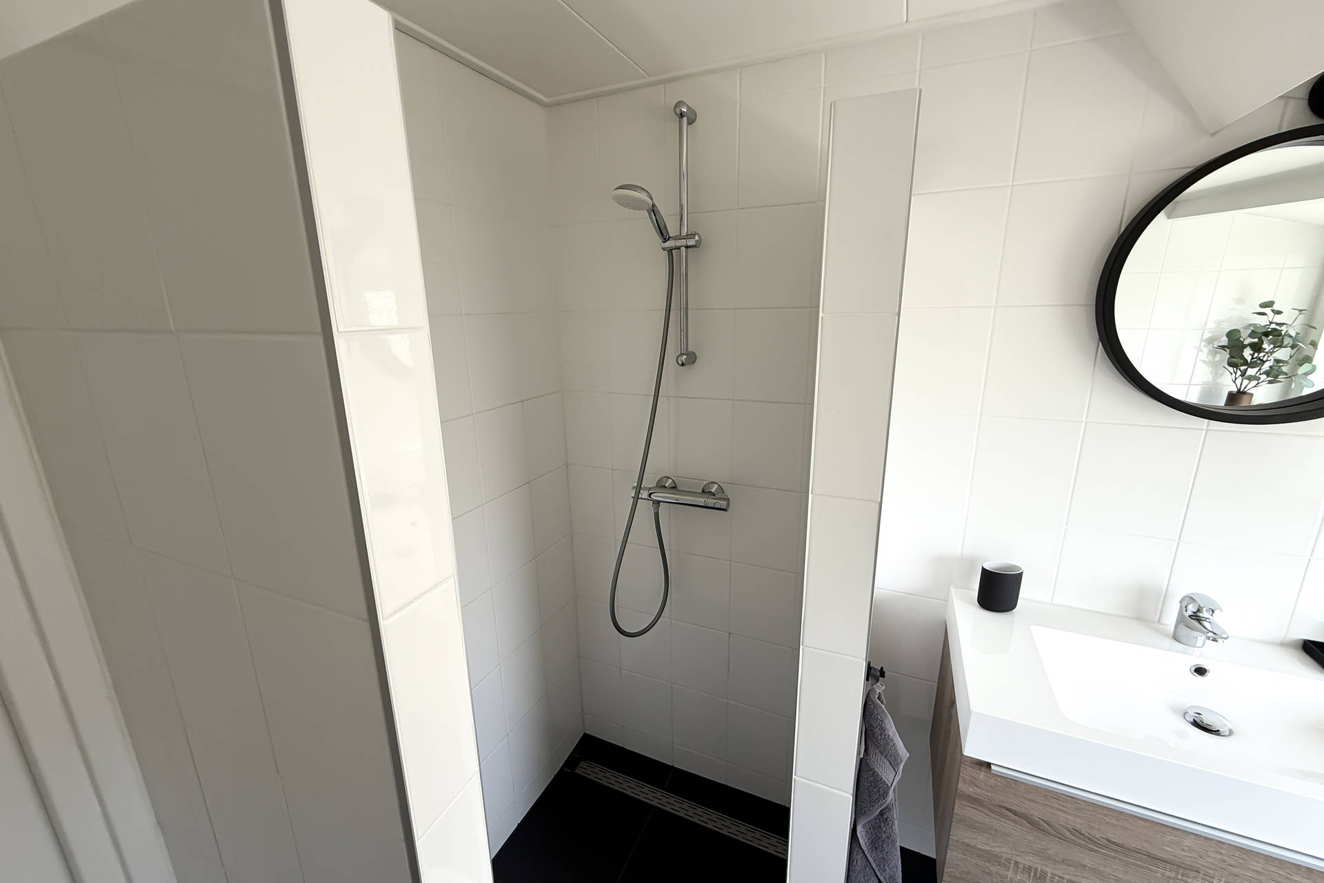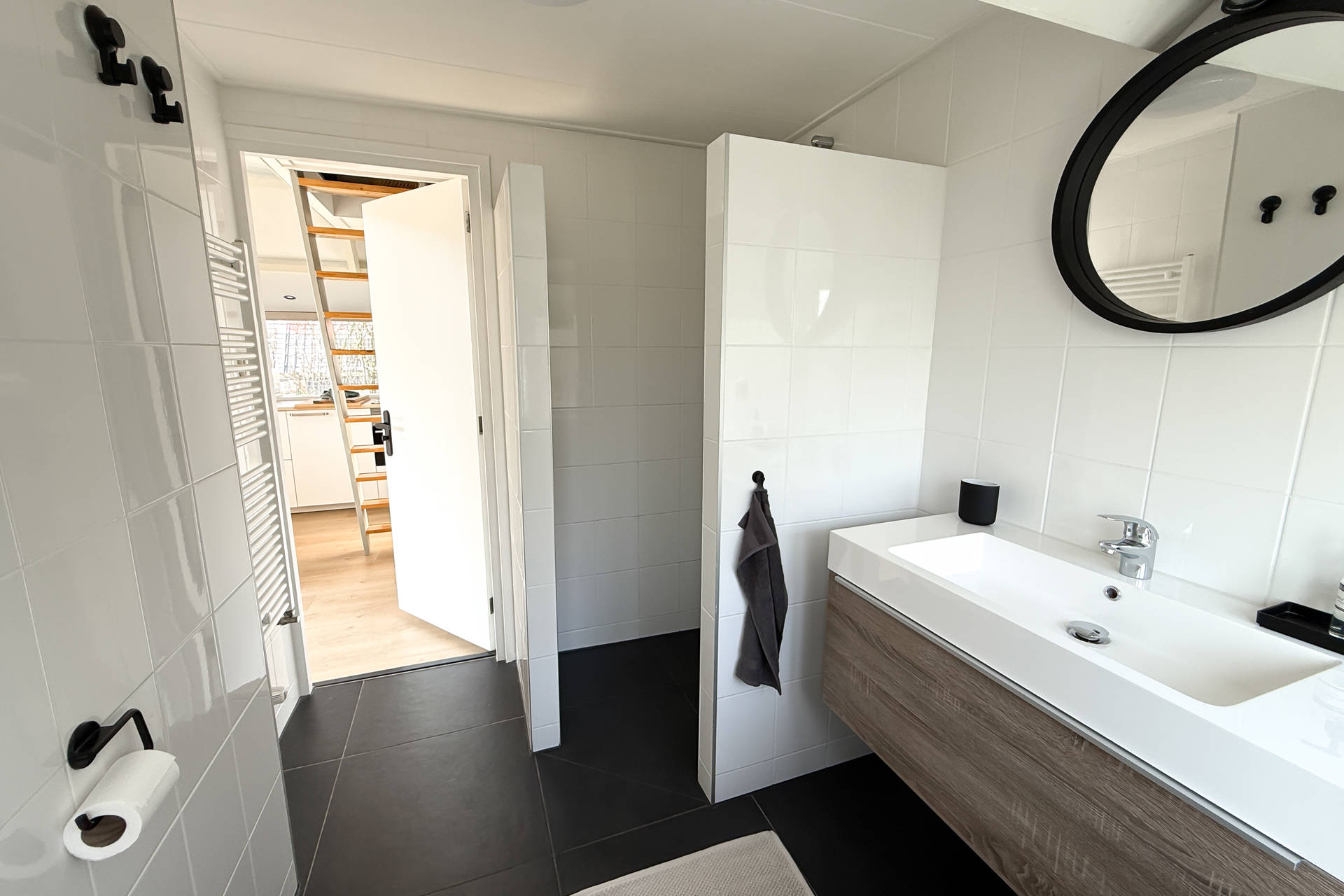 Die Schlafzimmer und Bad können vom Flur auf der Rückseite aus betreten werden. Ein Schlafzimmer hat Platz für 1 Bett und eine Waschmaschine und Trockner, was ideal ist in den Ferien. Das andere Schlafzimmer hat ein Bett für 2 Personen. Das helle Badezimmer verfügt über eine gute Duschkabine, Toilette und Waschbecken.