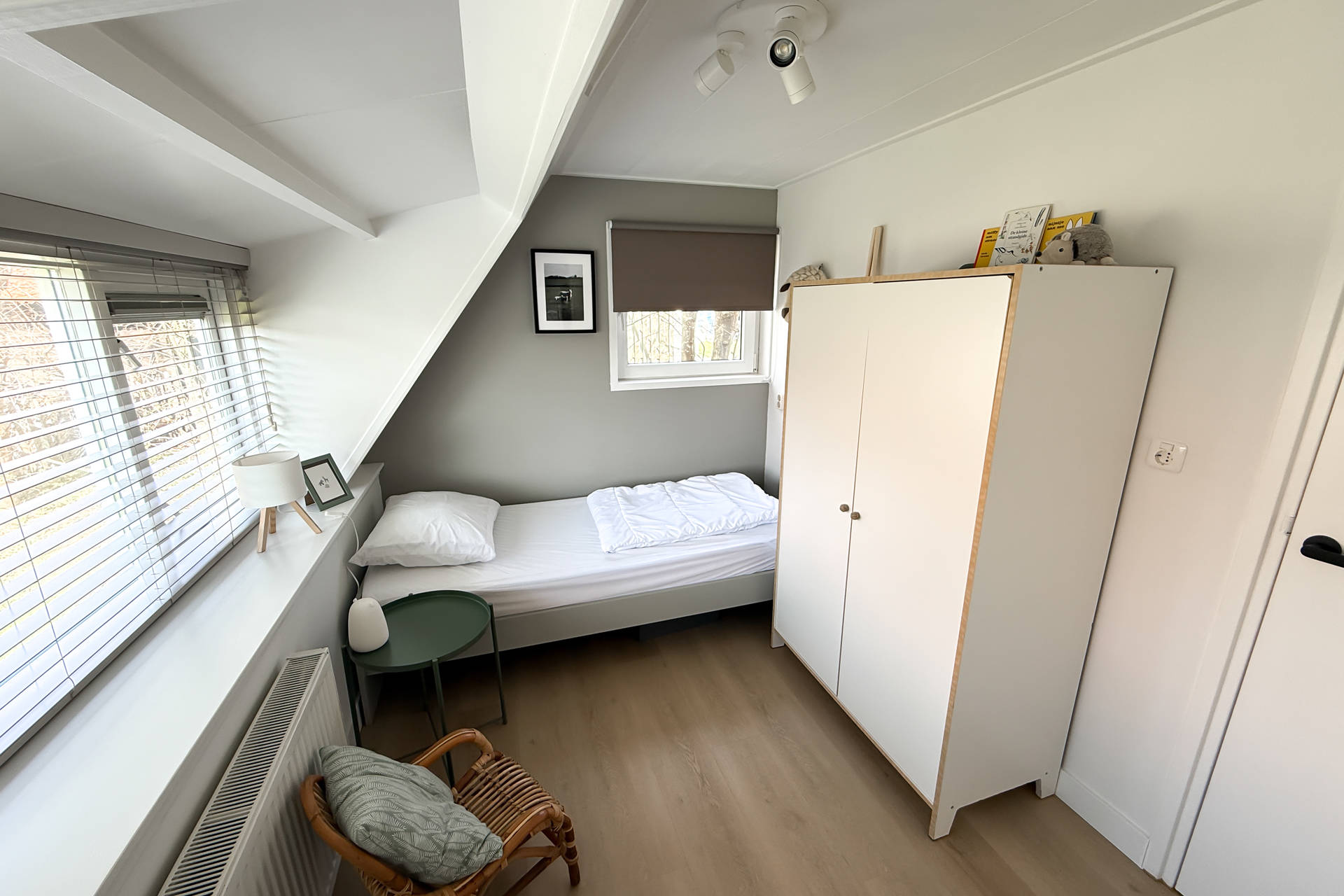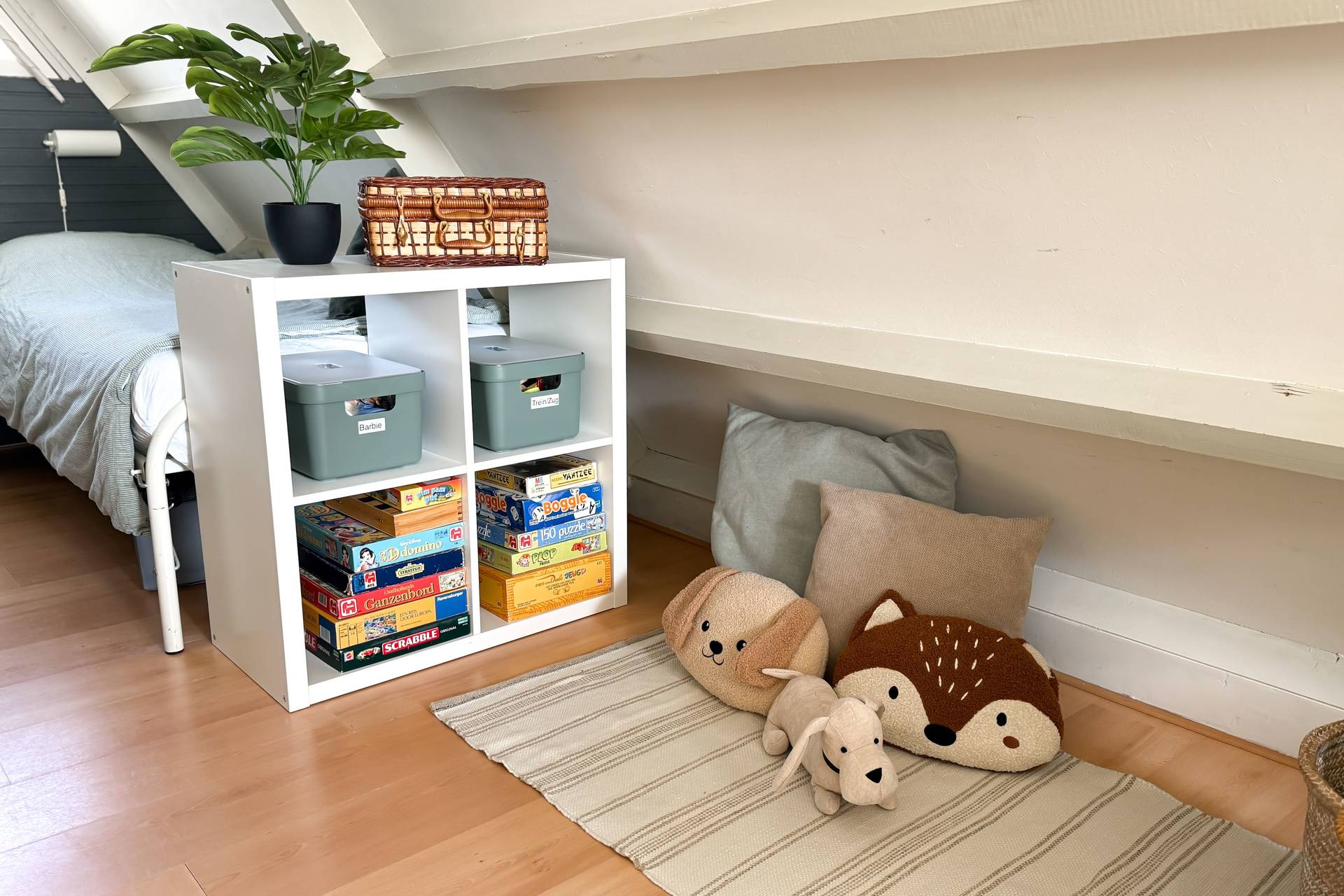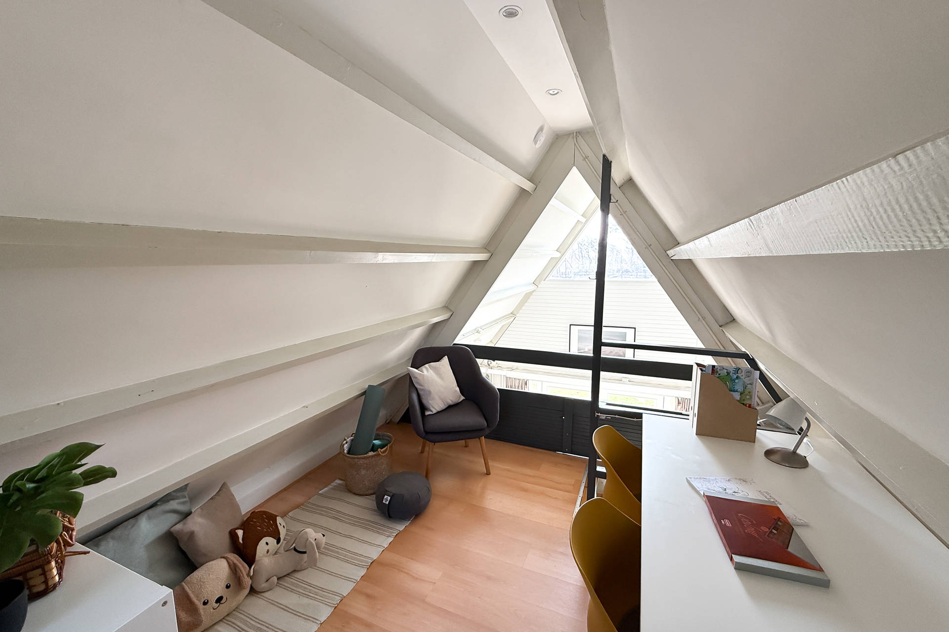Das dritte Schlafzimmer liegt im 1. Stock. Dieses kann über eine Treppe erreicht werden. In diesem Stock befinden sich zwei Single-Betten und es gibt einen kleinen Spielbereich für Kinder. Das Haus hat einen schönen, großen, sonnigen Garten auf der Süd- und Westseite des Hauses.