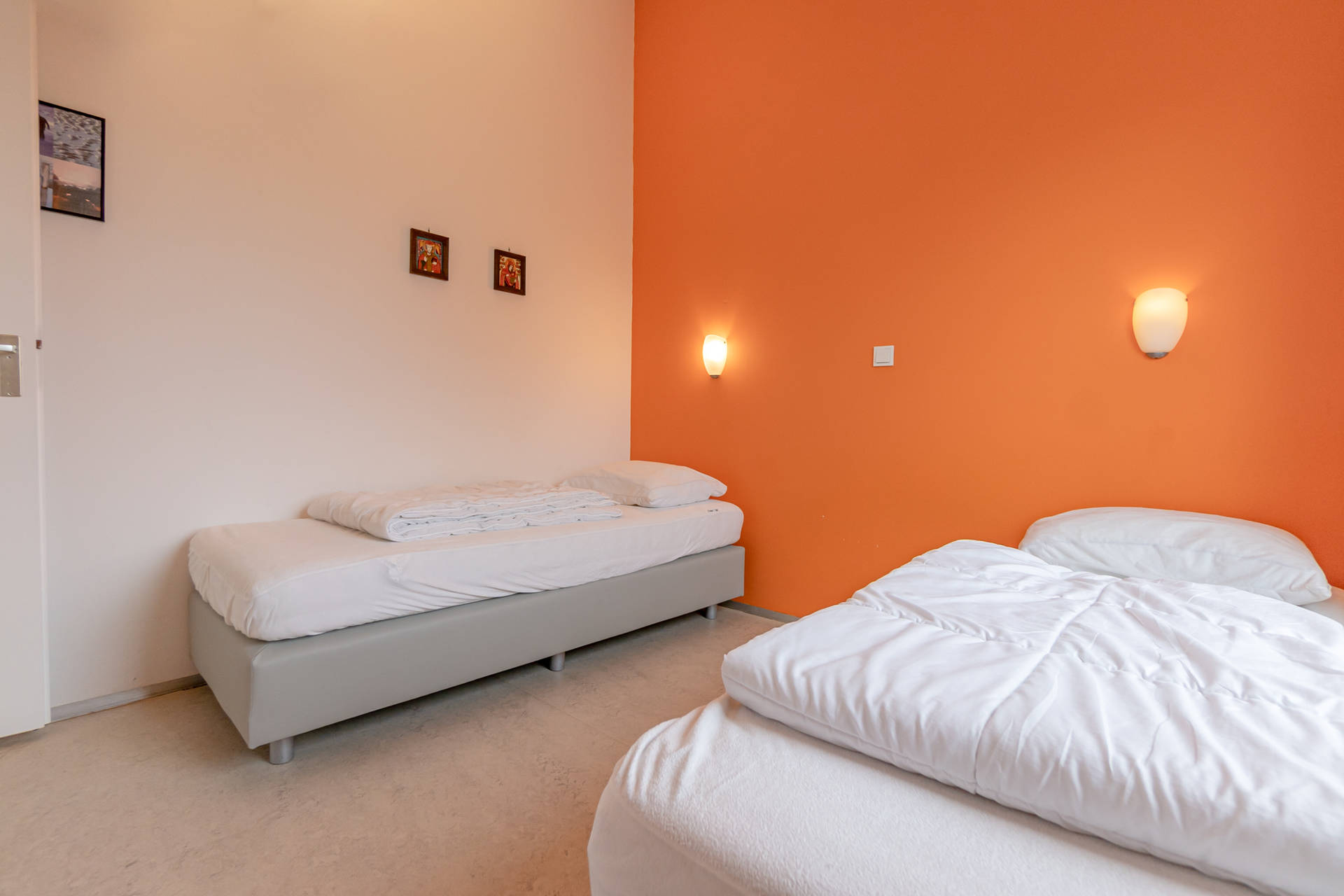Durch die Eingangstür betreten Sie den Eingangsbereich, in dem sich das Badezimmer und das separate Gäste-WC befinden. Vom Flur aus gelangt man in das Wohnzimmer mit offener Küche. Die Küche ist mit einem Backofen, einer Mikrowelle, einer Kühl-Gefrierkombination, einem 4-Flammen-Herd und einer Spülmaschine ausgestattet. Alle 3 Schlafzimmer grenzen an das Wohnzimmer und sind mit 2x Einzelbetten von 80 x 200 cm ausgestattet.