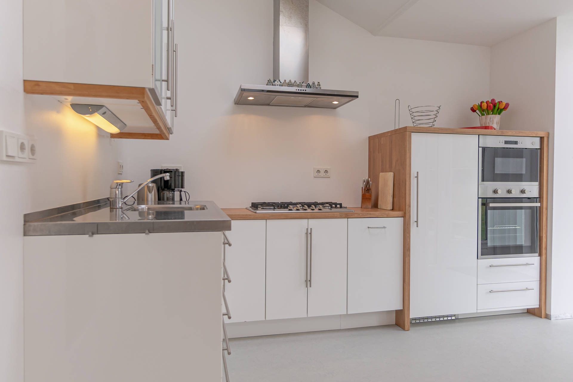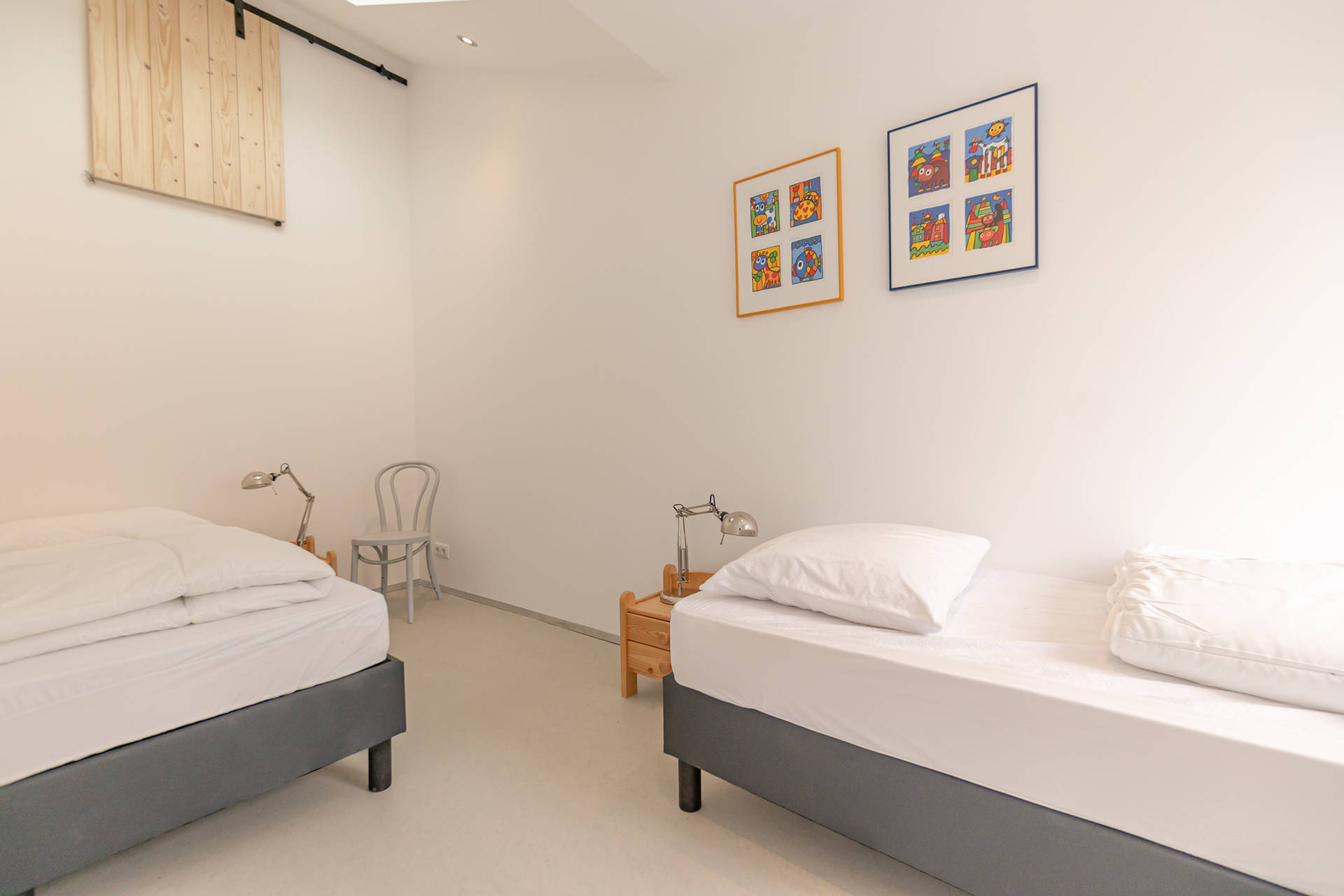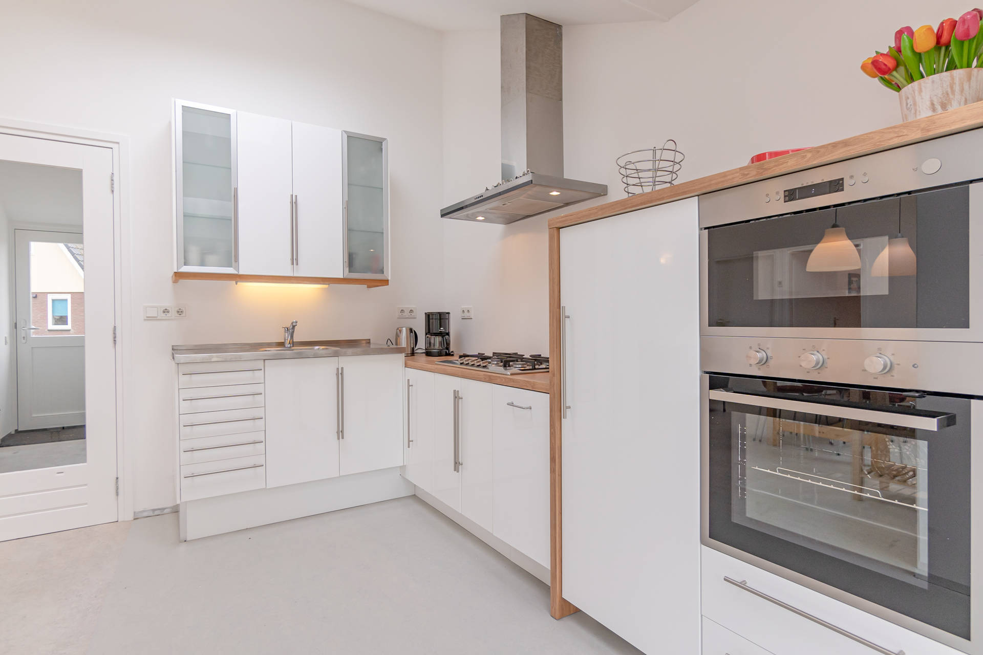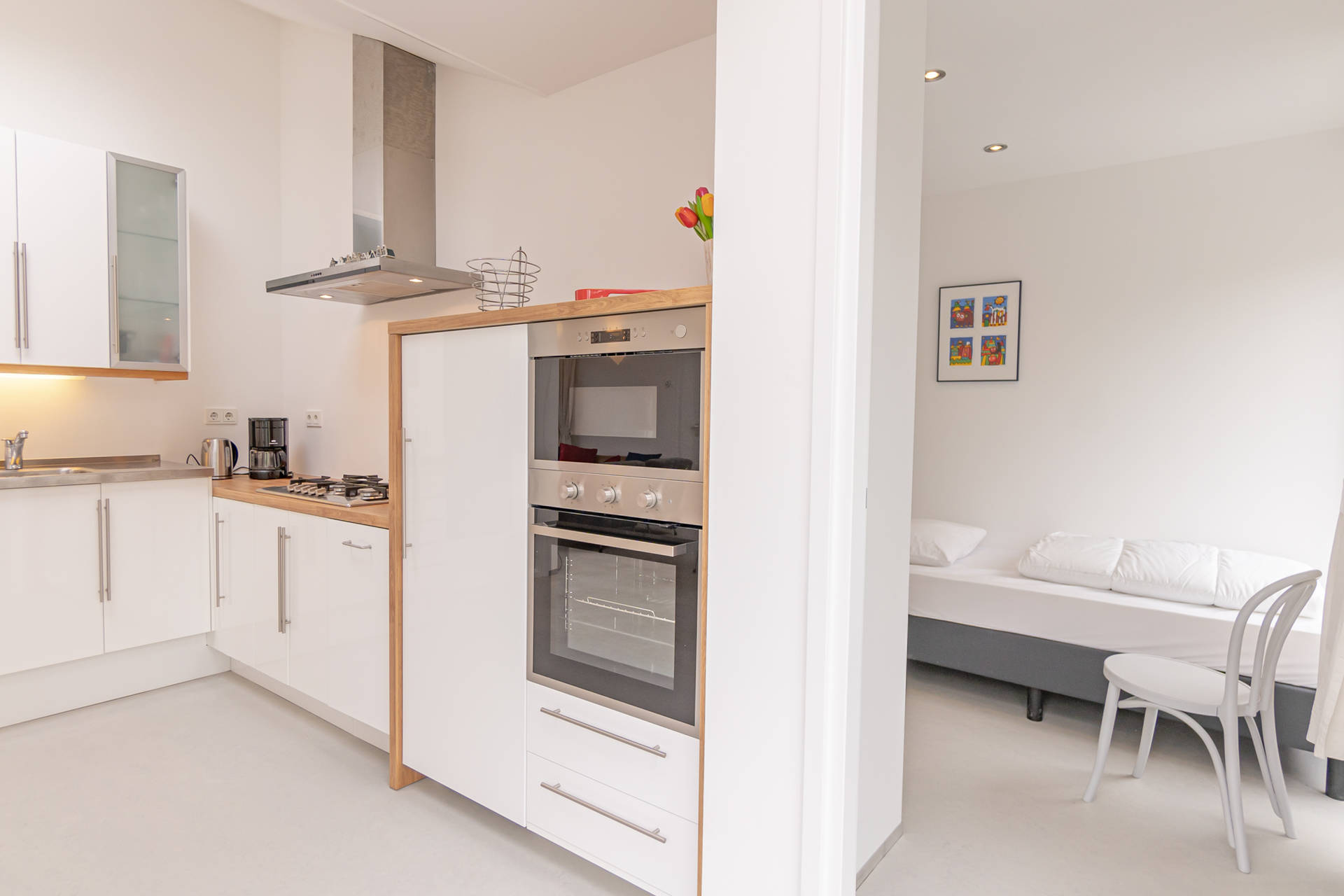 Das helle Wohnzimmer mit schöner Sitzecke grenzt an die offene Küche. Der moderne und leichte Look von Seinpost 2 ist sehr gemütlich. Das Haus befindet sich auf einer Ebene, alle Zimmer sind im Erdgeschoss.