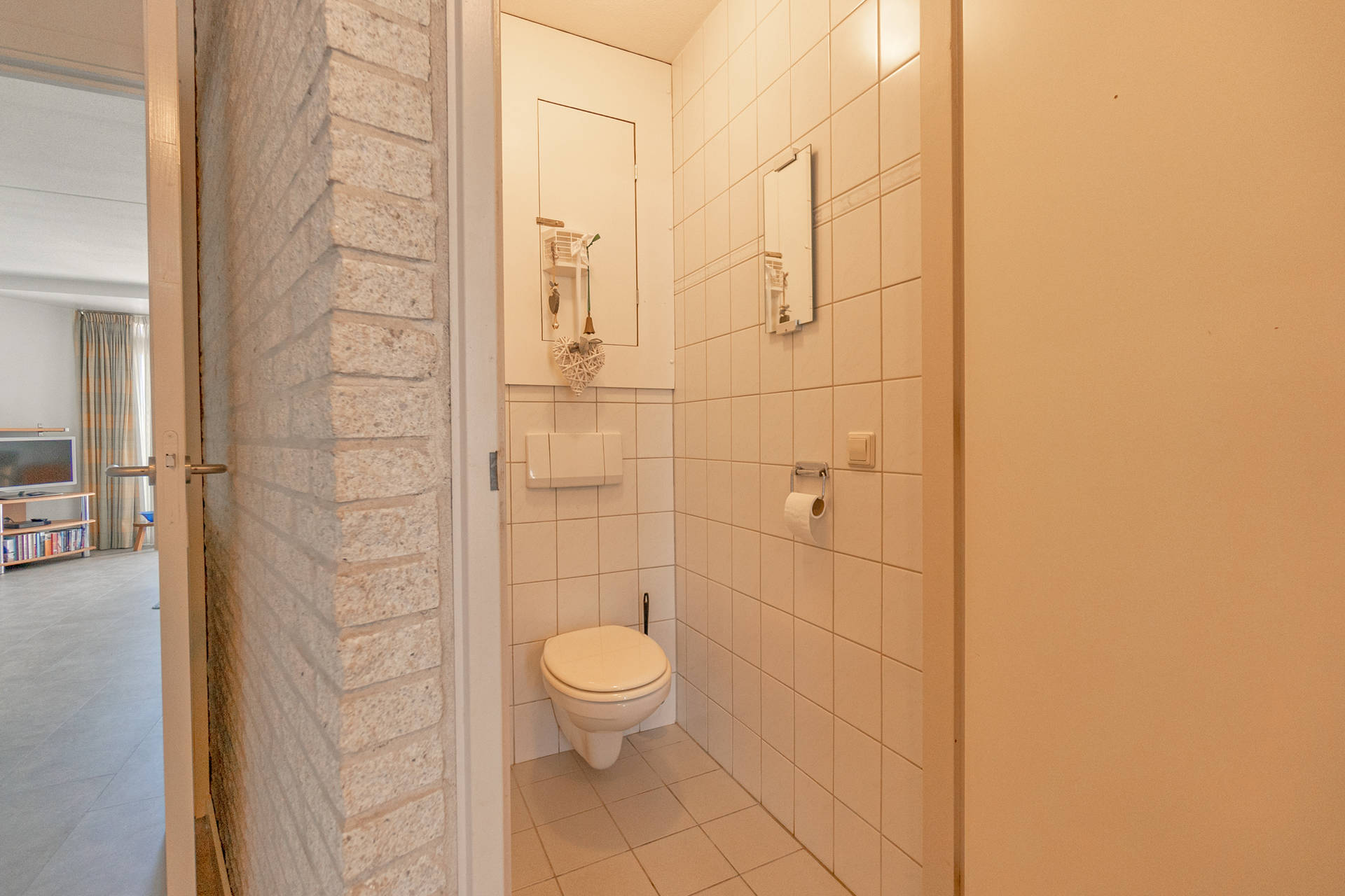 Durch die Eingangstür gelangt man in den Eingangsbereich, wo sich eine Gästetoilette und die Tür zum Schlafzimmer befinden. Das Schlafzimmer hat ein geräumiges Badezimmer mit begehbarer Dusche. Die Helle Wohnzimmer hatt ein nach Süden ausgerichteten Garten.