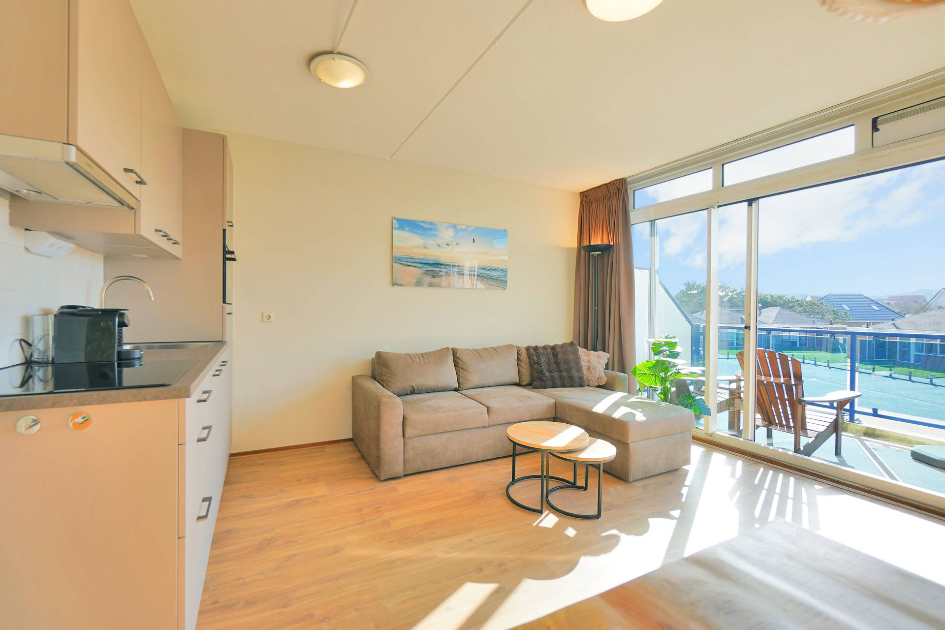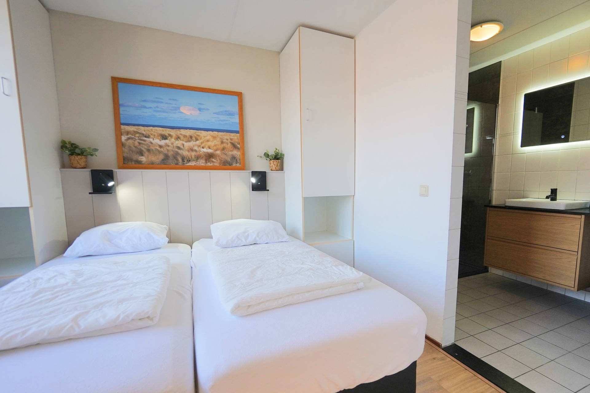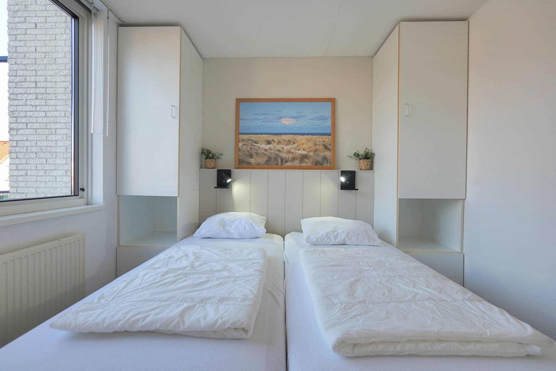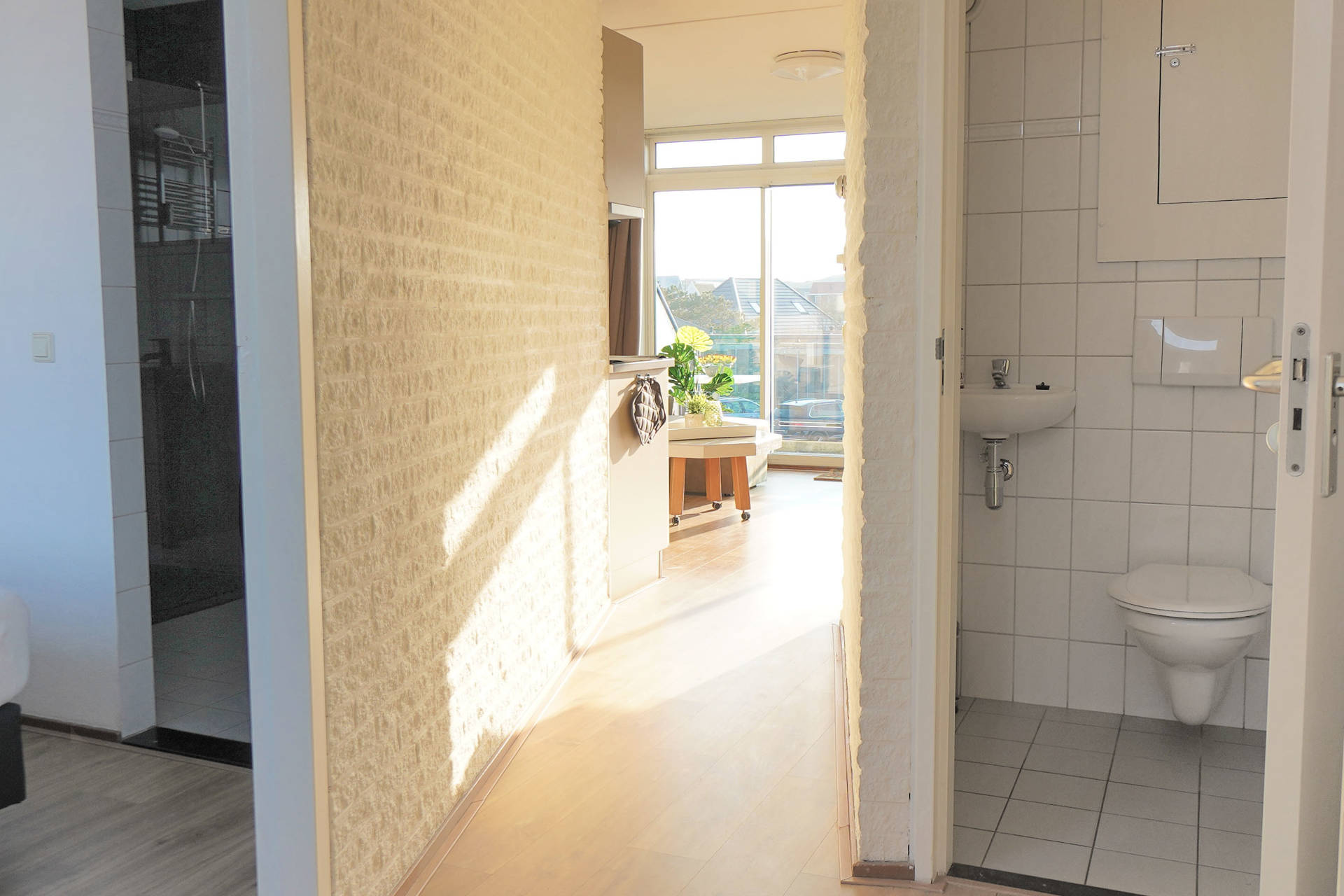 Das Appartment befindet sich im ersten Stock der Wohnanlage de Seinpost und ist ruhig gelegen. Beim Betreten der Wohnung finden Sie auf der linken Seite das Schlafzimmer mit zwei Einzelbetten von 90 x 2.00 und ein en suite Badezimmer. Das Badezimmer hat eine Dusche und Waschbecken. Es gibt eine separate Toilette.