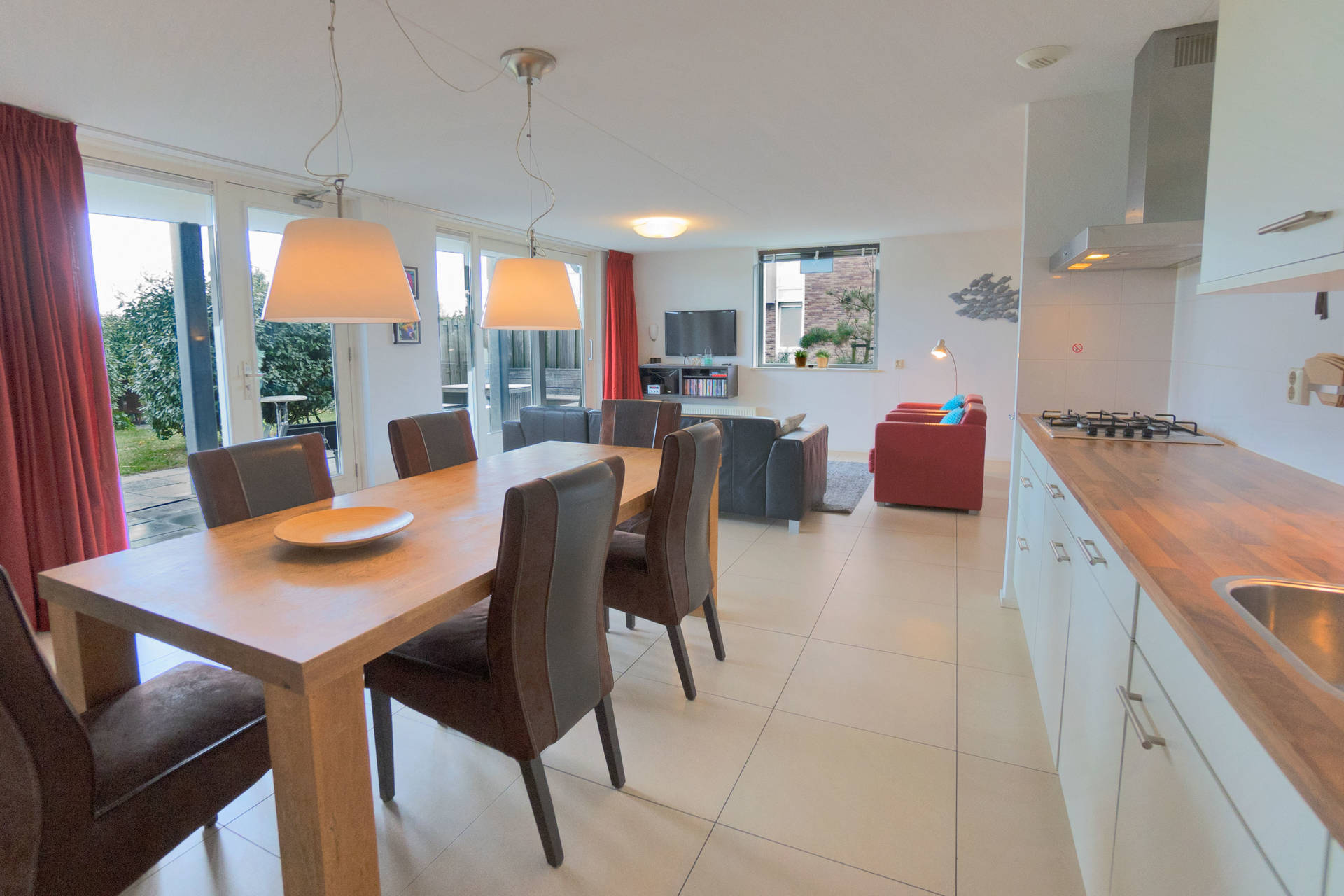 Dieses Ferienhaus verfügt über ein geräumiges Wohnzimmer mit offener Küche und großem Flur. Die Küche ist vollständig ausgestattet, es gibt einen großen Esstisch und die Küche hat eine Kombination aus Mikrowelle, Geschirrspüler, Kühlschrank und kleinem Gefrierschrank. Im Wohnzimmer befindet sich eine geräumige Sitzecke mit Fernseher.