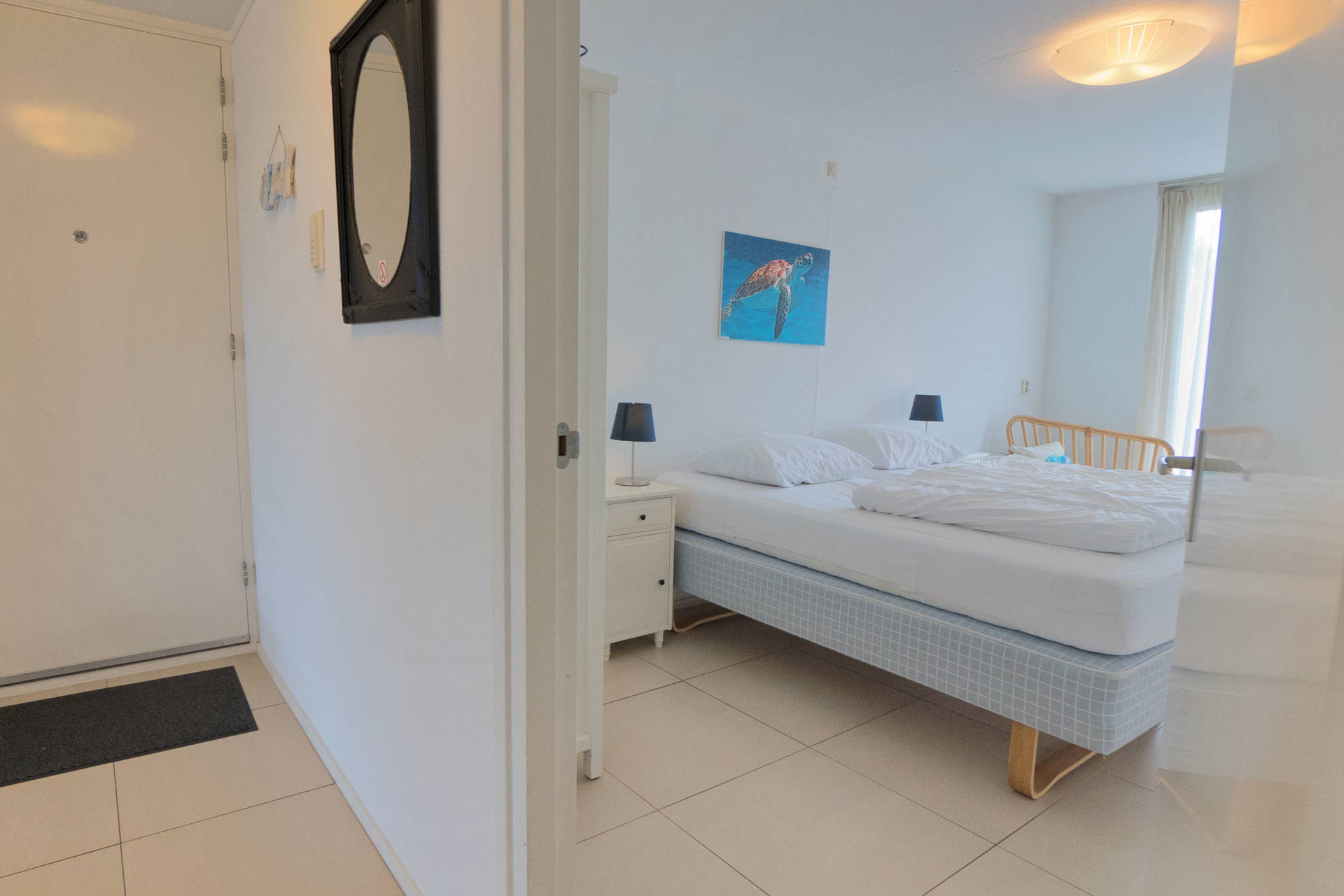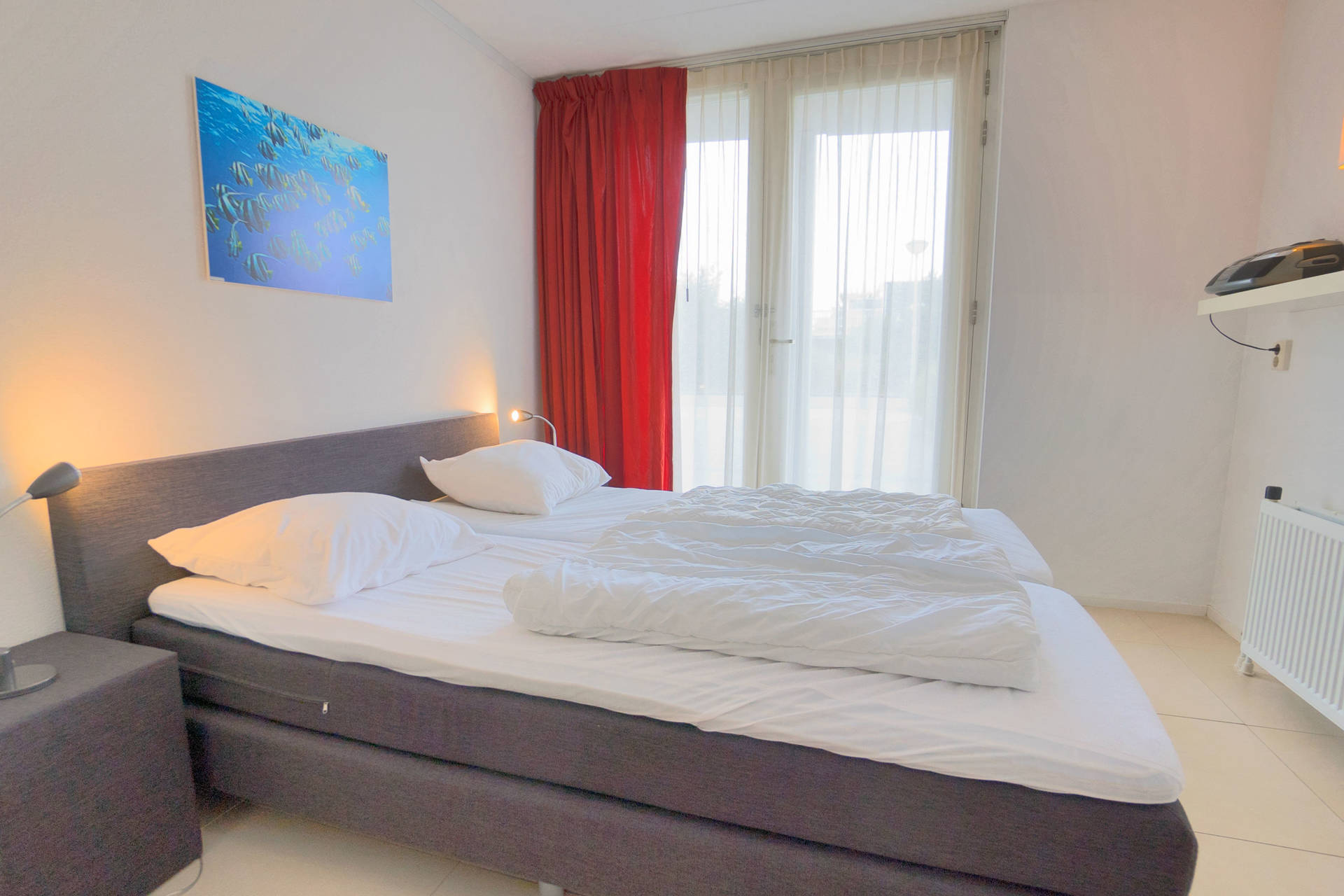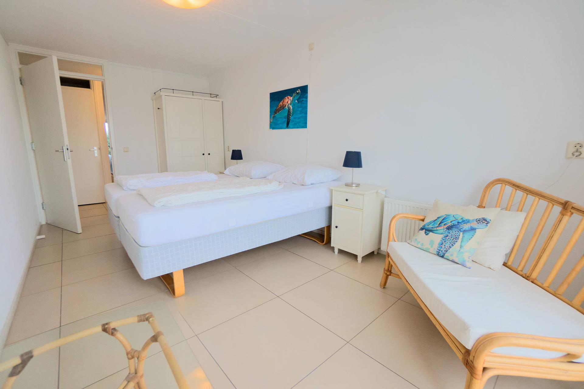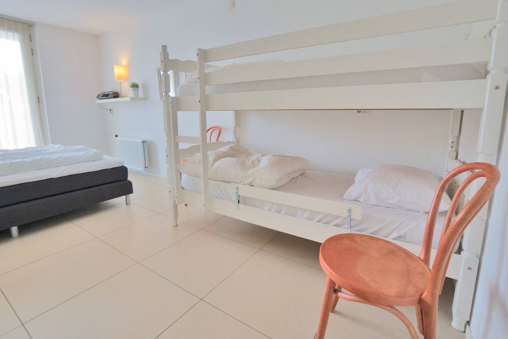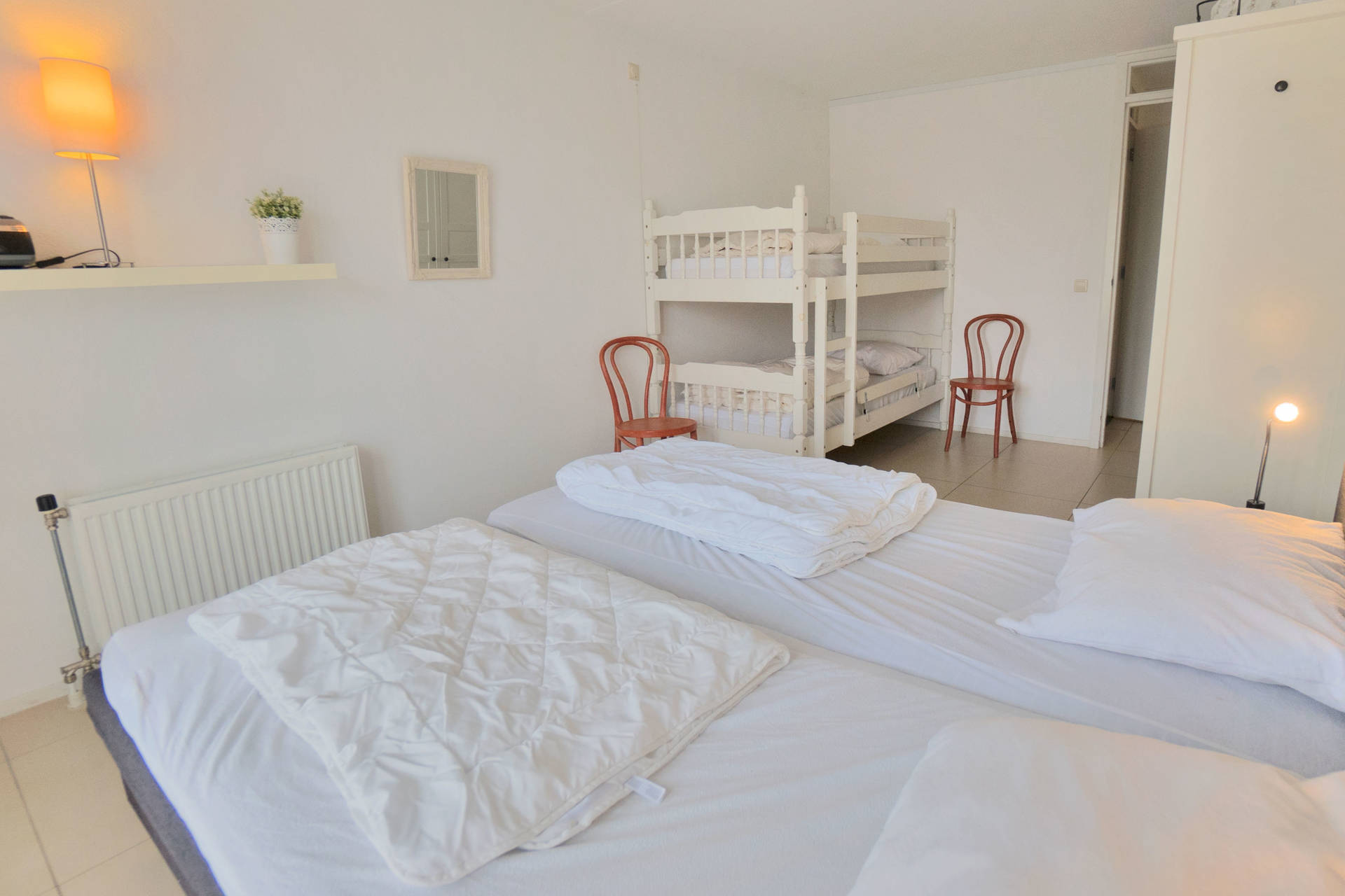 Die Wohnung verfügt über 2 große Schlafzimmer und bietet Platz für 6 Personen. Ein Schlafzimmer hat zwei einzelne Boxspringbetten. Das andere Schlafzimmer verfügt über ein Etagenbett und zwei einzelne Boxspringbetten, dieses Zimmer eignet sich daher für 4 Personen. Auf Wunsch können Sie ein zusätzliches Kinderbett und Hochstuhl im LekkerNaarZee mieten.