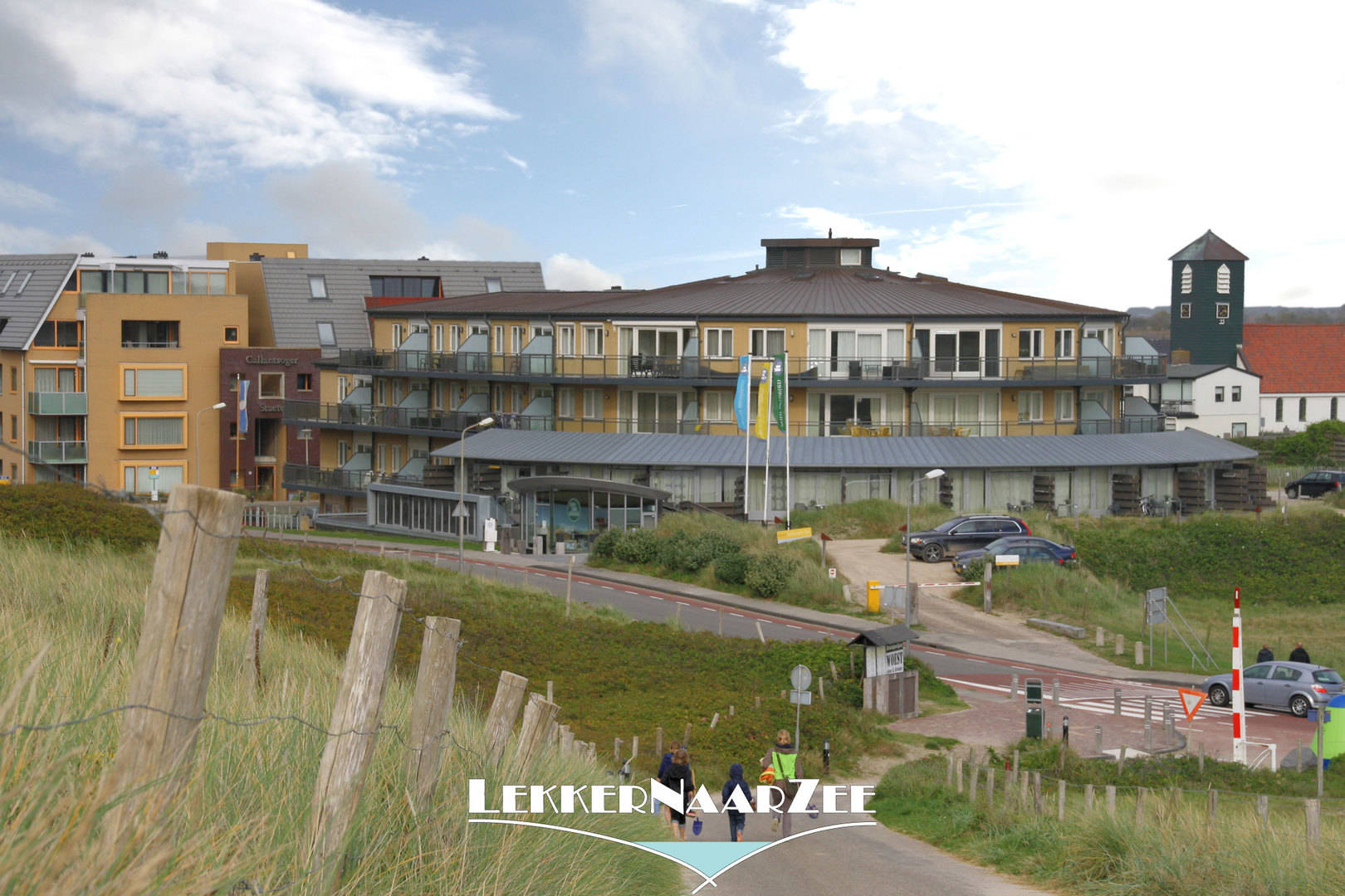 Sie hat einen Blick auf den Strand Eingang der Dünen und Naturschutzgebiet Zwanenwater und hoch über dem geschäftigen Treiben von Callantsoog