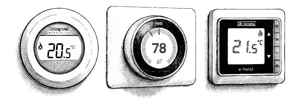 De thermostaat regelt de verwarming in het hele huis. Dit kan een model zijn van Honeywell, Remeha, ICY of een ander merk – ze werken allemaal ongeveer hetzelfde. In veel vakantiehuizen is de thermostaat gedeeltelijk begrensd. Je kunt de thermostaat dan instellen tot maximaal 22 °C.