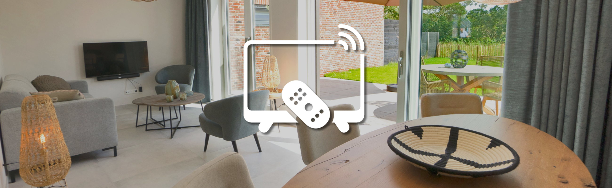 In diesem Ferienhaus steht ein Fernseher mit einer Decoder-Box. Über diesen Empfänger werden die TV-Sender empfangen.
